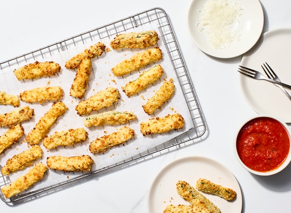 - Meanwhile, heat marinara sauce following package instructions. Serve zucchini sticks with marinara for dipping.