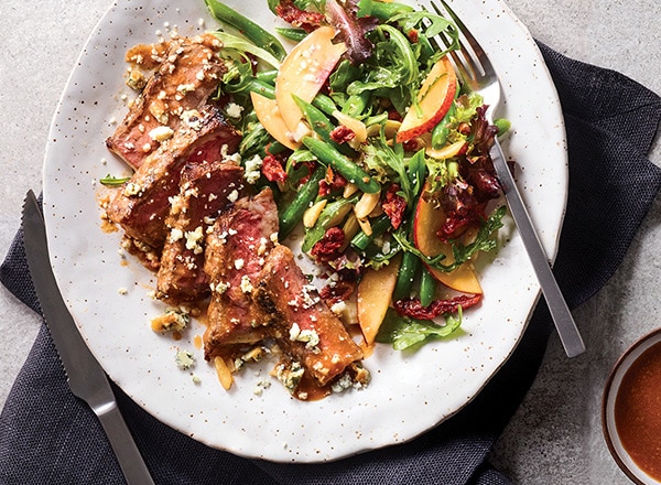 - Slice steaks and sprinkle evenly with cheese. Serve with reserved sauce for dipping.