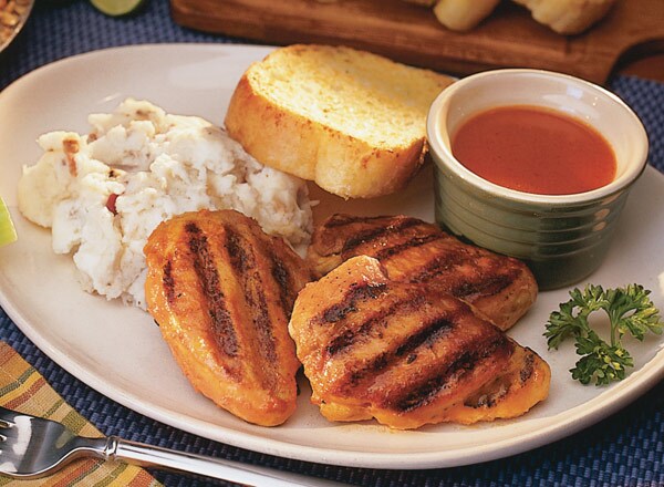 - Preheat 2-sided tabletop grill. Place cornstarch and seasoned salt in bag; seal and shake to mix. Add chicken (wash hands); seal and shake to coat. Add wing sauce; seal and knead bag to coat completely.