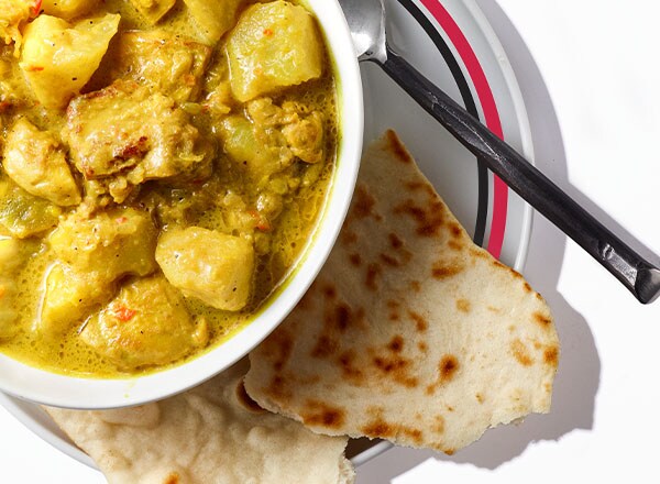 - Simmer 60–90 minutes, stirring occasionally, until potatoes and taro are fork-tender and chicken is 165°F (mixture will thicken as it sits). Prepare roti wraps during last 45 minutes of cook time. Chop cilantro; stir into curry when ready to serve.