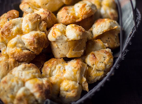 - Cut each biscuit into 3 equal pieces; roll each piece into a ball, making 48 small dough balls. Roll each ball in the seasoned butter, then in the cheese mixture. Place 4 balls in each muffin cup; top with any remaining cheese.