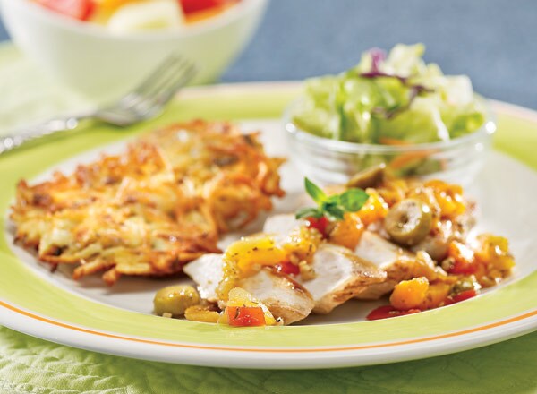 - Place 1 tablespoon oil in pan; swirl to coat. Spoon 1–2 tablespoons potato mixture per latke into pan (in batches), then flatten into 3-inch latkes. Cook 3–4 minutes on each side until golden and 160°F. Repeat with remaining oil and potato mixture; serve.