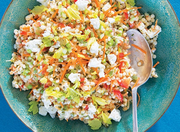 - Combine remaining ingredients with couscous, toss until coated. Serve.