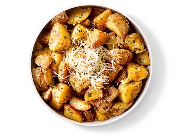 - Stir potatoes to coat with baking sheet drippings. Add chives, cheese, and remaining ½ teaspoon salt; toss to coat well. Top with additional cheese, if using. Serve.