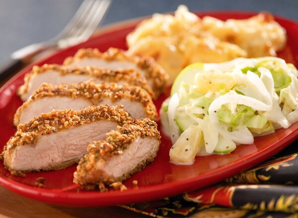- Coat both sides of turkey with mustard. Dip turkey into egg, turning to coat boat sides (then allowing any excess to drip off). Finally, dip into bread crumbs; press with fingertips to coat evenly (wash hands).