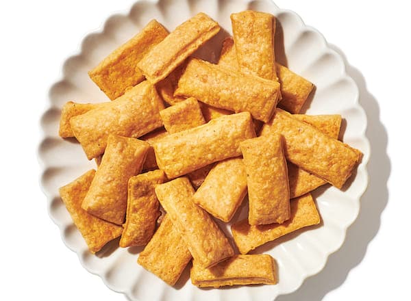- Preheat oven to 350°F; line baking sheet with parchment paper. Dust work surface lightly with flour; roll out dough to ⅛-inch-thick rectangle. Trim off uneven edges, then cut dough into 2- x 1-inch crackers. Arrange on baking sheet and bake 20–25 minutes until edges are slightly golden. Let stand on baking sheet until completely cool; serve.