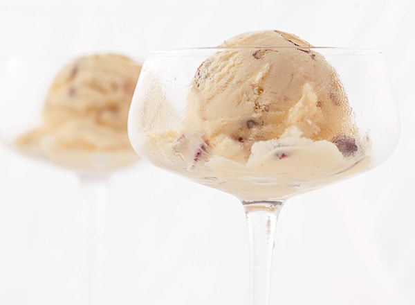 - Strain into a bowl. Stir in wine and honey. Cover with plastic wrap and refrigerate about 2 hours or until completely chilled. Freeze in an ice cream freezer according to manufacturer's instructions. Chop almonds. When ice cream is starting to set, add almonds and continue processing. Transfer to a chilled storage container; freeze at least 3 hours or until firm.