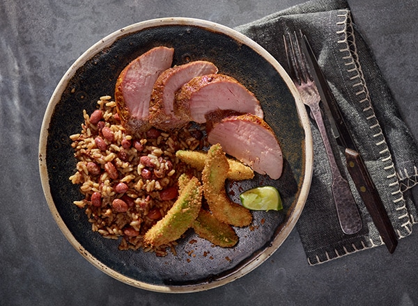 - Slice pork and serve over rice and beans, with avocado slices and lime wedges on the side.