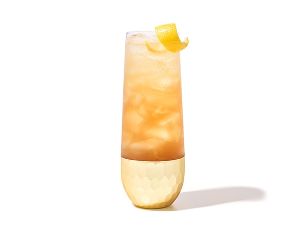 - Strain into an ice-filled Collins glass and top with soda water. Garnish with lemon twist, if desired.