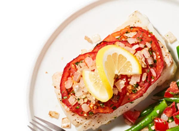 - Spoon onion mixture over tomatoes, then squeeze juice of remaining one-half lemon over top. Bake 10–15 minutes until centers of fillets flake easily and are 145°F. Serve.