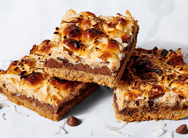 - Whisk condensed milk and peanut butter until thoroughly blended. Layer crust evenly with chocolate morsels, cookie pieces, marshmallows, and coconut, then drizzle condensed milk mixture evenly over top.