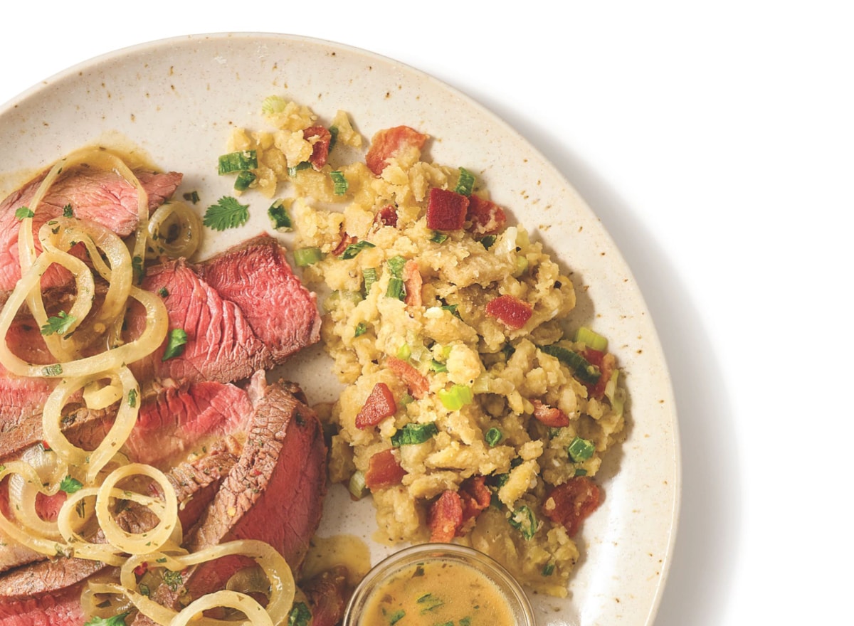 Amount per ¼ recipe serving: Calories 280, Total Fat 13g, Sat Fat 3g, Trans Fat 0g, Chol 15mg, Sodium 640mg, Total Carb 36g, Fiber 2g, Total Sugar 1g, (Incl. 0g Added Sugars), Protein 5g, Vitamin D 0%, Calc 0%, Iron 6%, Potassium 10%