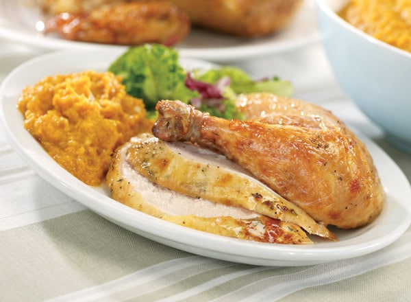 - Let chicken stand 5 minutes before slicing. Slice chicken thinly and serve.