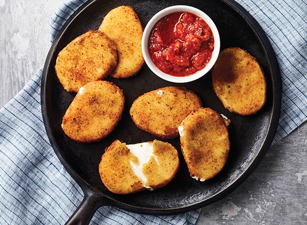- Preheat oil in large sauté pan on medium-high 2–3 minutes. Add cheese to pan; cook 2–3 minutes on each side until browned. Heat marinara to serve on the side.