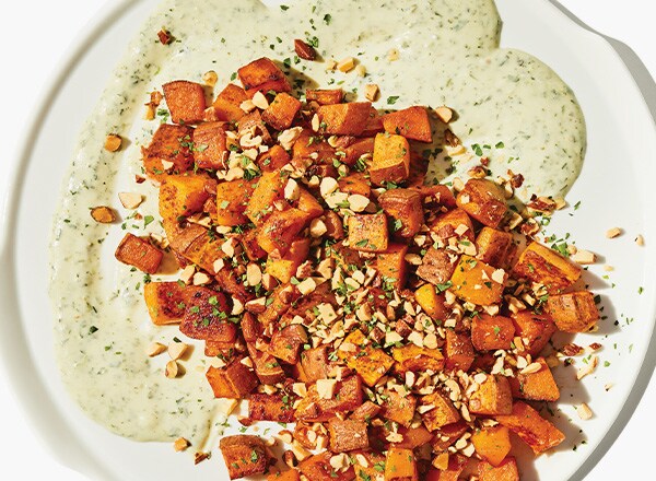 - Preheat oven to 425°F. Line baking sheet with foil. Peel sweet potatoes (if desired) and cut into ½-inch cubes. Place butternut squash and sweet potatoes on baking sheet; drizzle with oil, sprinkle with salt and smoked paprika, and stir to coat. Roast 20–25 minutes, stirring halfway through cook time, until browned and fork-tender.