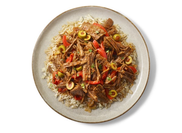 - Reduce heat to medium and cover. Simmer 3–4 hours until beef is 195°F (for shreddable). Drain olives. Shred beef (using 2 forks), then stir in olives. Chop cilantro finely. Sprinkle beef with cilantro; serve.