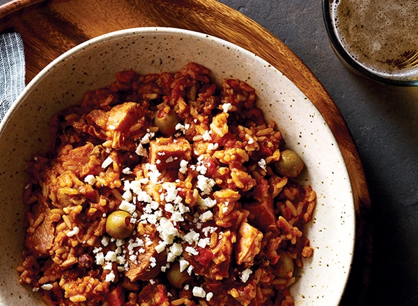- Remove pork and chop roughly. Stir rice and olives into slow cooker. Add pork back to slow cooker; cover and cook on HIGH 30–40 minutes (or on LOW 45–60 minutes).