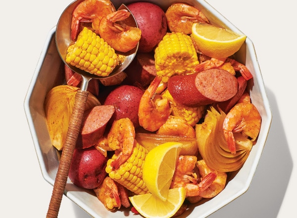 - Combine in large pot: beer, water, onions, seafood seasoning, and hot sauce. Bring to boil on high, then add potatoes and sausage. Cook 20–25 minutes, until potatoes are tender. Add corn and continue cooking 5 minutes. Stir in shrimp and cook 3–4 minutes, until pink and opaque. Drain and serve with lemon wedges and cocktail sauce (if desired).