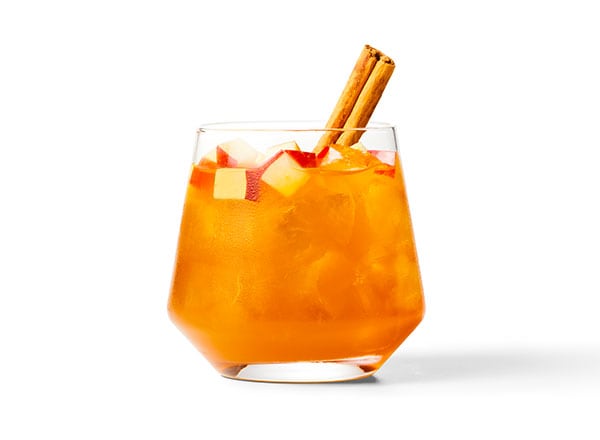 - Fill cocktail shaker with ice; add cider, rum, and triple sec.