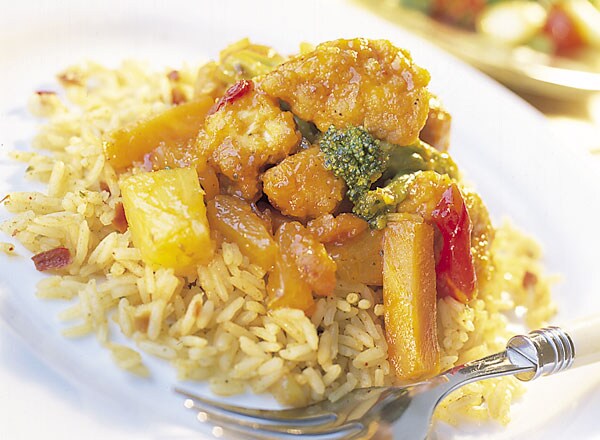 - Add pineapple and broccoli stir-fry to wok. Stir, reduce heat to medium-high, and cover. Cook 7 minutes, stirring occasionally. Stir in sweet and sour sauce and honey, reduce heat to low, and cover. Simmer 8 minutes.