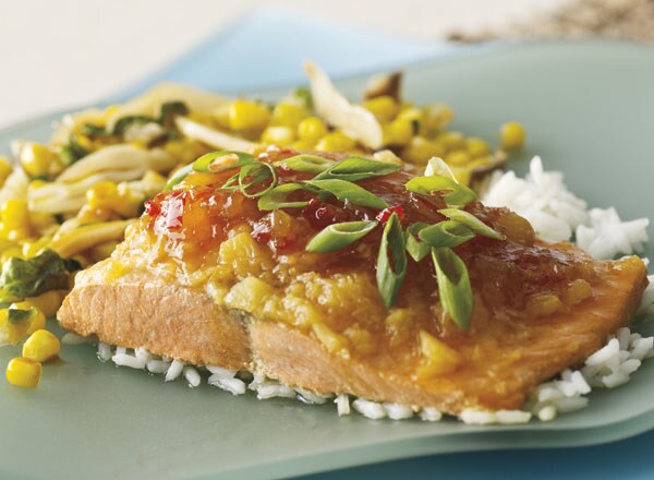 - Pour sauce over fish, then cover; cook 2 more minutes to develop flavor. Stir together pineapple preserves, chile sauce, and remaining 2 teaspoons teriyaki sauce.