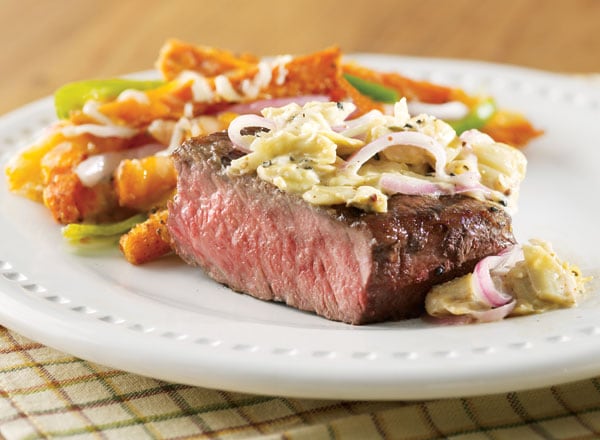 - Place peppers and onions in center of foil. Top with fries, seasoned salt, pepper, and cheese. Bring up foil sides; double-fold top and ends to seal packet.
