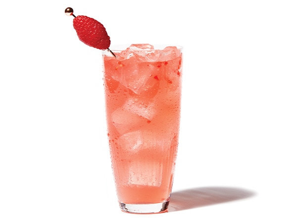 - Top with ginger beer. Garnish with raspberries, if desired.