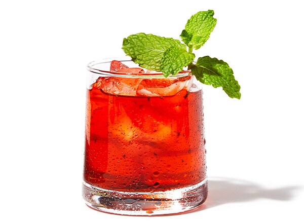 - Add ice and remaining ingredients (except garnish). Shake well; strain into an ice-filled rocks glass.