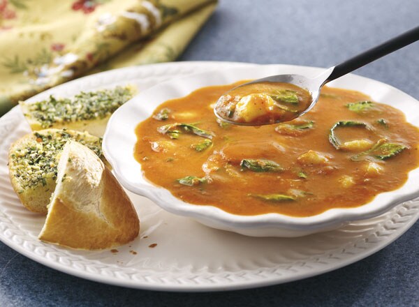 - Puree soup lightly using stick blender. Stir in gnocchi and spinach; cook 2–3 more minutes until spinach wilts. Serve.