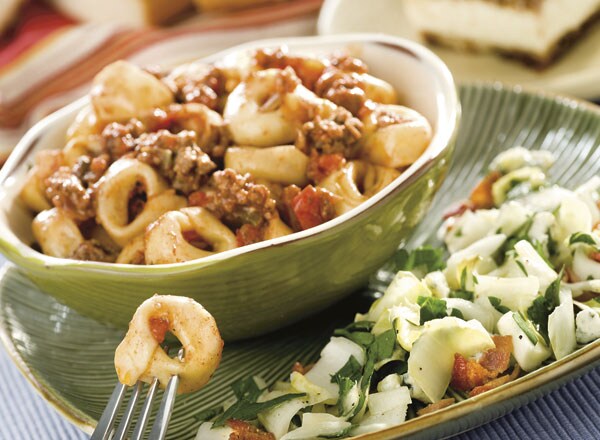 - Combine tortellini and one-half of meat sauce in microwave-safe bowl (reserve remaining sauce for later use). Cover and microwave on HIGH 6–7 minutes or until pasta is tender. Stir and serve.