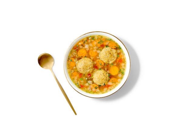 - Wet hands and form (or scoop) matzo mixture into 1-inch balls (about 12). Drop matzo balls gently into soup; cover and simmer 13–15 minutes until matzo balls have puffed. Stir dill, parsley, and lemon juice gently into soup. Serve.
