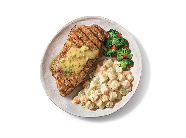 - Complete your meal with creamed spinach, fresh salad blend, and fresh fruit for dessert.